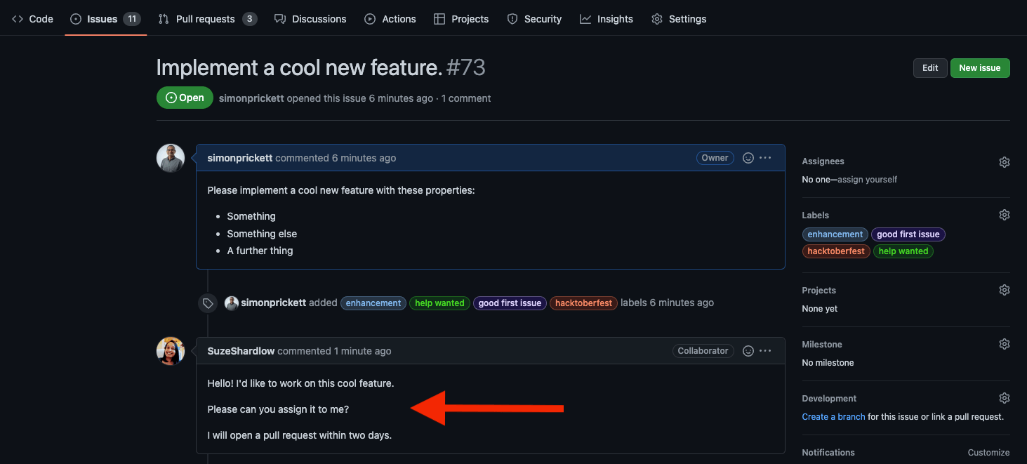 - If you don't submit a pull request within two calendar days, we will make the issue available to other contributors.