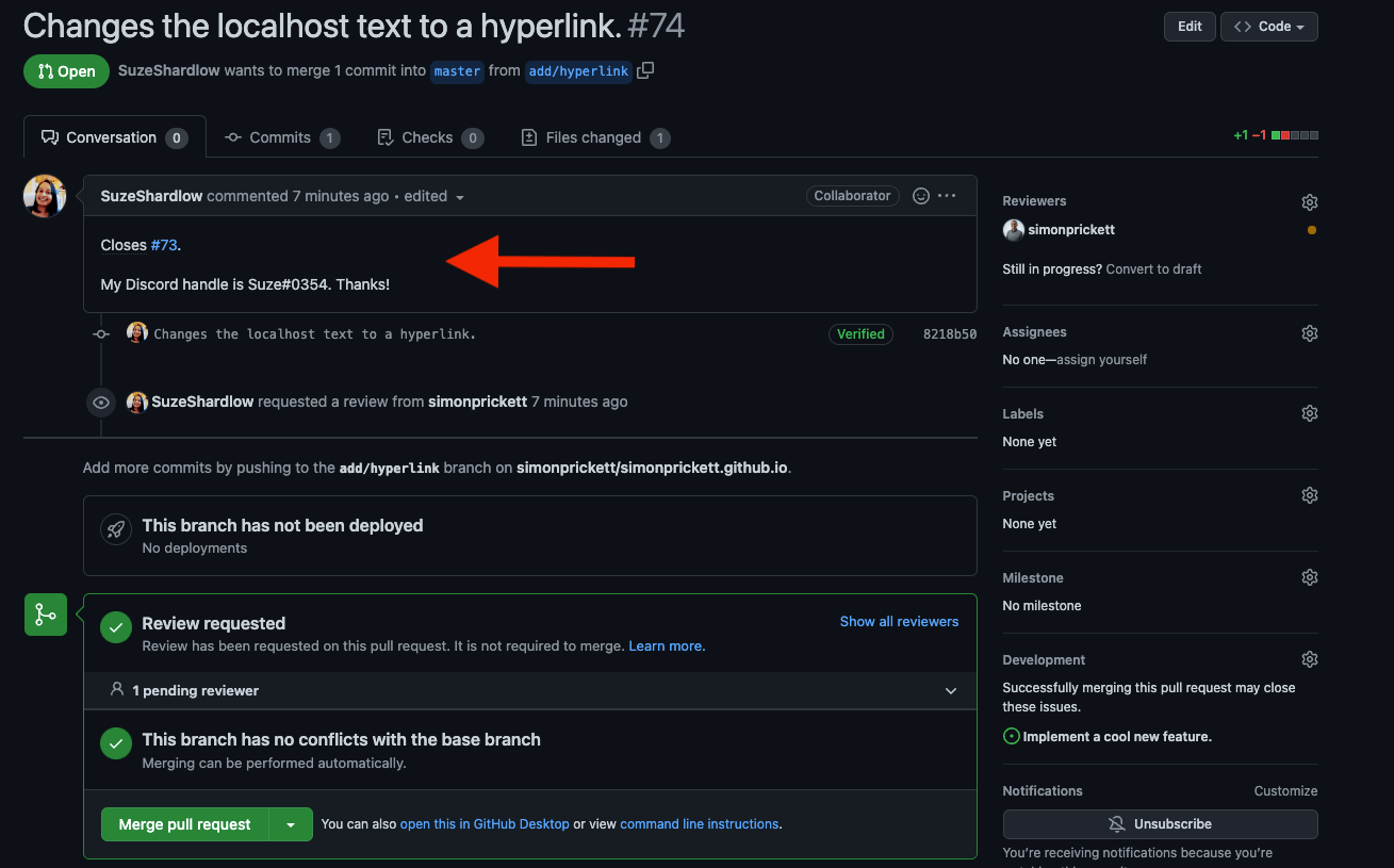 - If you're a member of our Discord server, include your Discord handle and we will bestow the Hacktoberfest 2022 role upon you.